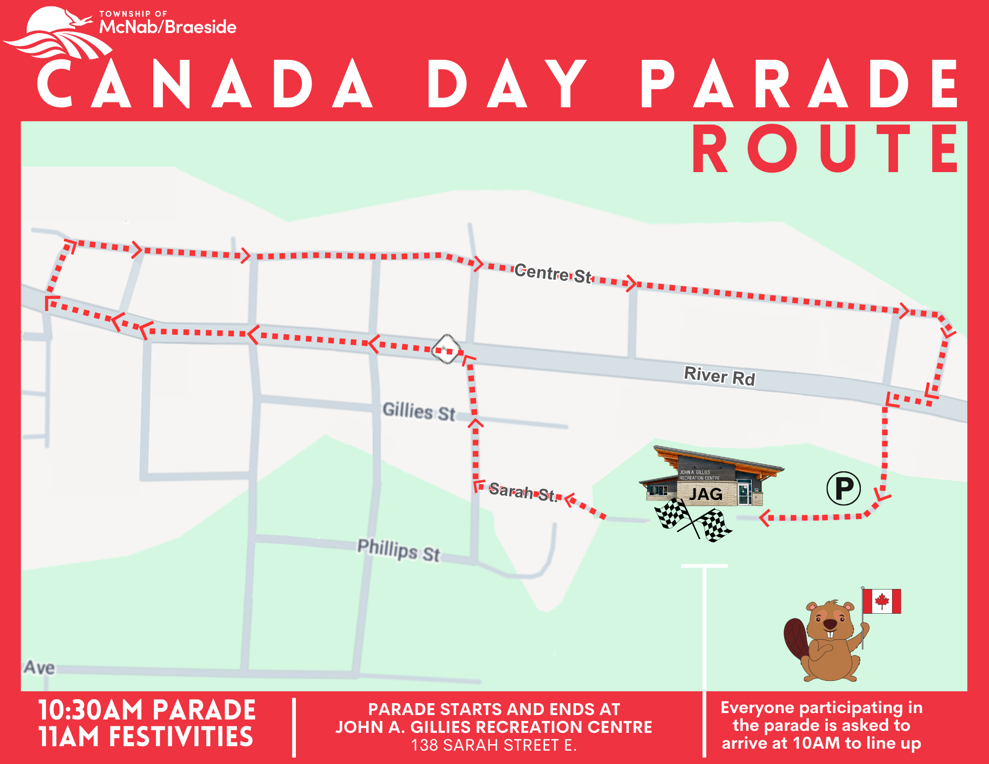 Bring your lawn chair, wear your red and white and come celebrate everything that makes our community special. Whether you're here for the *free* breakfast, cheering on or participating in the parade or enjoying an afternoon of music and good company, Canada Day in McNab/Braeside is all about community spirit, connection and unforgettable memories.